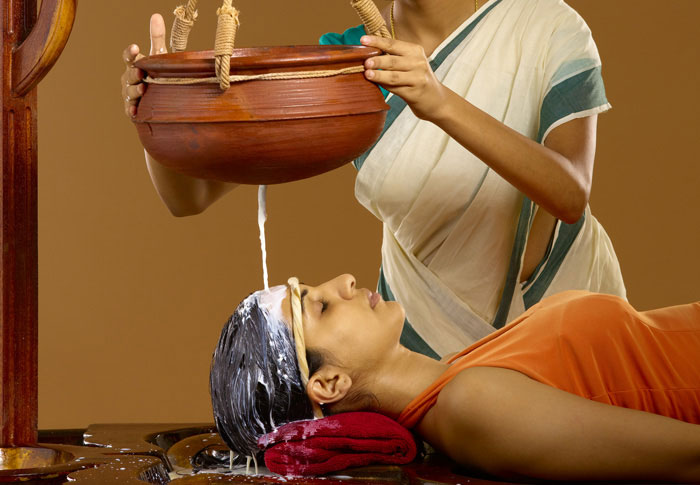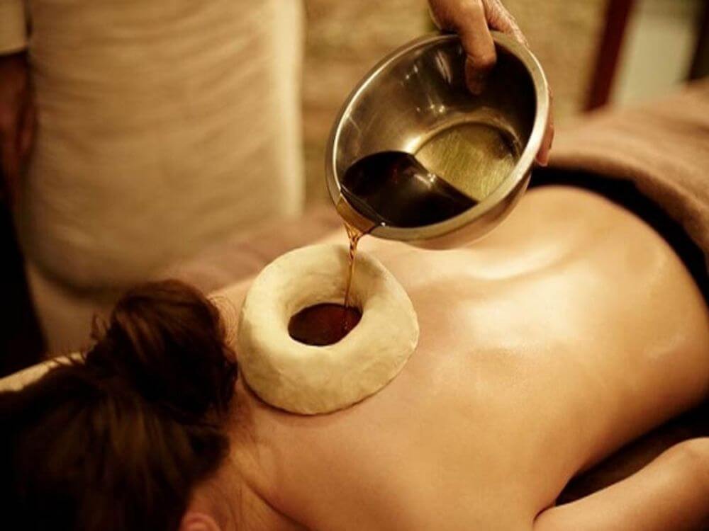Continuous flow of warm oil on the forehead to relieve stress, HTN and Psychological issues.